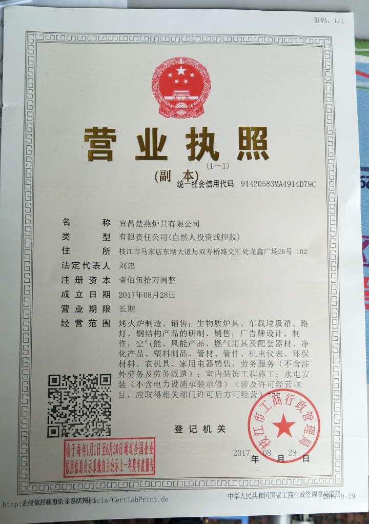 宜昌楚燕爐具有限公司,位于枝江市仙女鎮(zhèn)仙女大道與九龍港交匯處仙女工業(yè)園,是一家集火爐制造、銷售;生物質(zhì)爐具、車載垃圾箱、路燈、鋼結(jié)構(gòu)產(chǎn)品的研制、銷售;廣告牌設(shè)計、制作;空氣能、風(fēng)能產(chǎn)品、燃?xì)庥镁呒芭涮灼鞑?、凈化產(chǎn)品、塑料制品、管材、管件、機(jī)電儀表、環(huán)保材料、農(nóng)機(jī)具、家用電器銷售;勞務(wù)服務(wù)(不含涉外勞務(wù)及勞務(wù)派遣);室內(nèi)裝飾工程施工;水電安裝(不含電力設(shè)施承裝承修)。